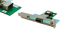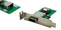 Input and Output adapter to 4 internal SAS bus connections with 8088 external crossover pin out. Attached to a Mini PCI bracket.